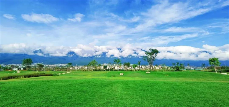 遠(yuǎn)處蒼山披翠,風(fēng)起云涌,近處波光粼粼,花繁樹(shù)茂