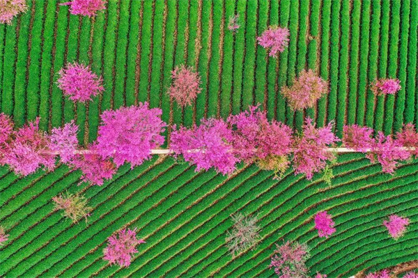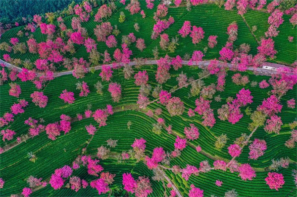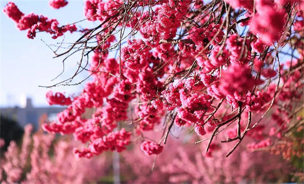 成片的粉色彌漫枝頭