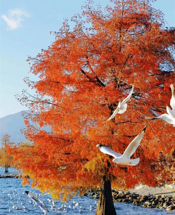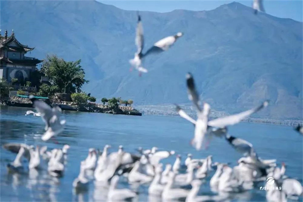 將藍(lán)色的洱海與潔白的海鷗盡收眼底