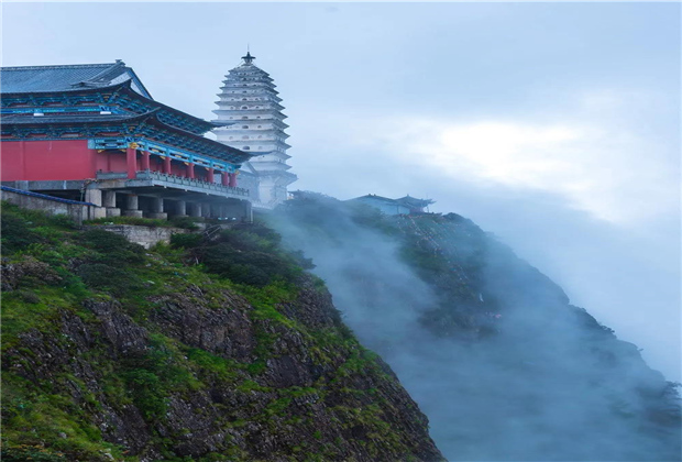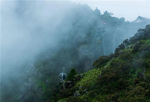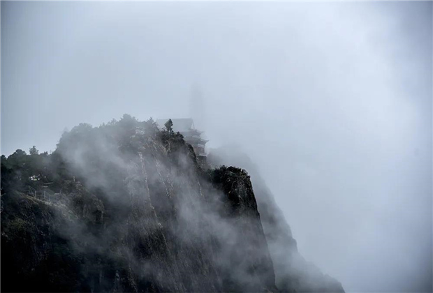 蒙蒙細(xì)雨下,青翠蔥蘢的雞足山云霧繚繞,或輕飄漫舞,或怒濤排空,仙氣氤氳,霧在山中游,山在霧中行,儼然一副潑墨山水畫(huà)。
