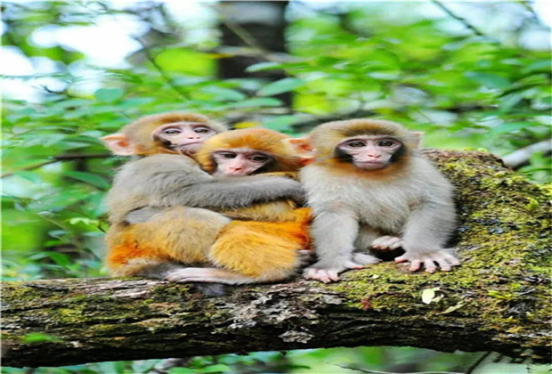 天空逐漸放晴,閑云悠悠,滿(mǎn)眼蒼黛,寂靜山林中,猴群自在地撒著歡兒。