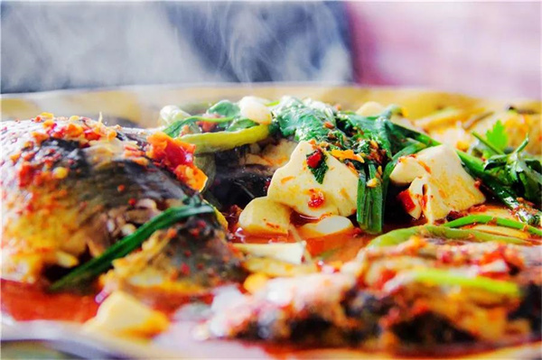 如果吃魚怕挑刺,就一定不能錯過賓川海稍魚。這道菜多采用賓川喬甸海稍村境內(nèi)水庫出產(chǎn)的新鮮鰱魚,魚肉柔韌刺少,切塊烹飪后極易入味。吃海稍魚,往往還配有一份獨特的蘸料,采用熱油澆淋蒜末、芝麻、辣椒和姜絲而成,噴香麻辣。