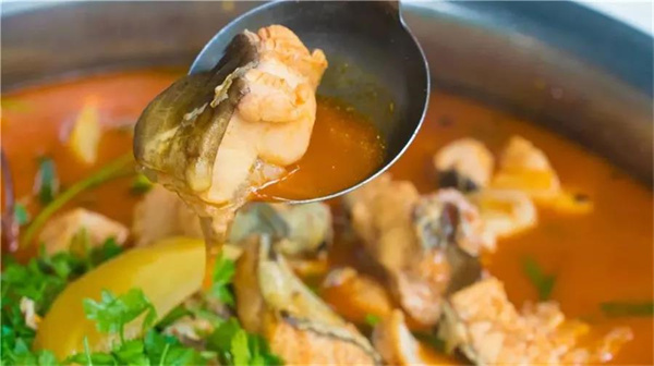 辣椒面、青辣椒、蔥段、姜絲、酸木瓜,加上大理人喜愛的鯽魚,煮出一鍋紅彤彤的酸辣魚來。還沒出鍋,酸木瓜的味道一揮發(fā),唾液便控制不住地開始分泌。吃進嘴里,魚肉的鮮甜配上湯汁的酸辣,令人欲罷不能。在大理,吃酸辣魚一定要用魚湯泡飯,一次能吃三大碗!