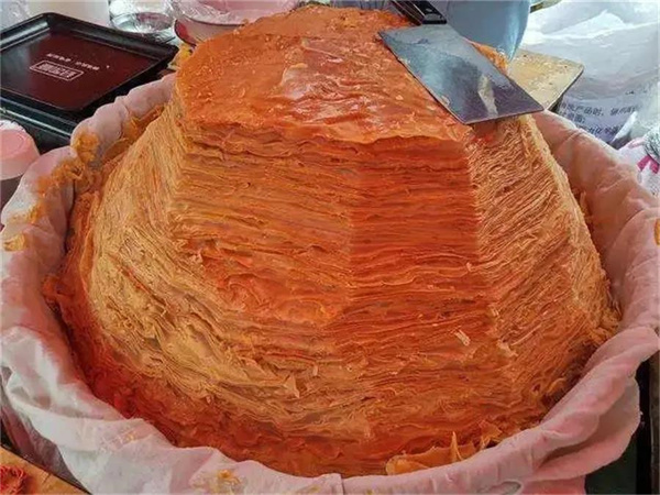 做生皮的,一定得是當(dāng)天現(xiàn)宰的豬,火燒去掉皮上的毛后,選取最嫩的部分,切成小塊,配上楊梅醬和梅子醋調(diào)制出的蘸水,生蘸而食,口感滑爽而有嚼勁,味道酸辣可口。
