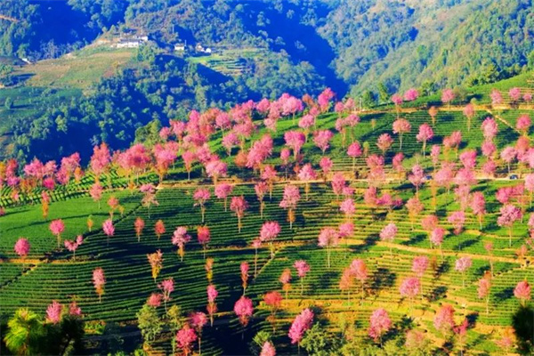 在櫻花開放的夢幻山谷