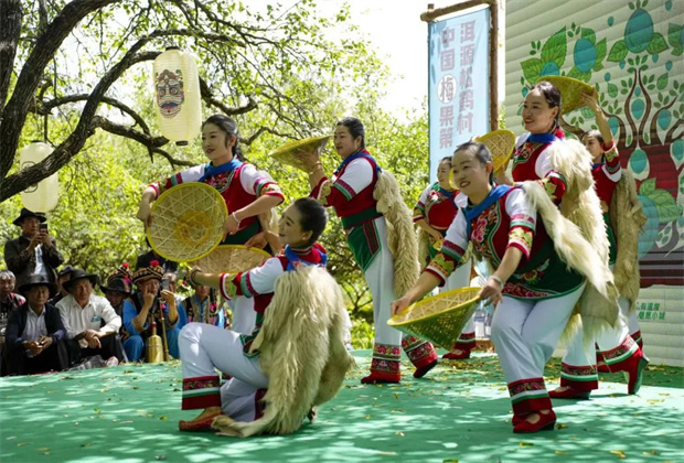 活動(dòng)現(xiàn)場(chǎng),在評(píng)選出的梅王樹下,舉行了多彩的民俗活動(dòng),喜慶青梅豐收。梅鄉(xiāng)長(zhǎng)者,在嘹亮的嗩吶聲中,通過當(dāng)?shù)靥赜械摹鞍宓蕬颉逼碓竵砟觑L(fēng)調(diào)雨順、國(guó)泰民安,表達(dá)梅農(nóng)的喜悅之情?;顒?dòng)上還舉行了洱源縣“梅王”“梅后”揭曉儀式、大理洱海肥業(yè)青梅專用肥料捐贈(zèng)儀式、世界小姐中國(guó)區(qū)組委會(huì)向洱源贈(zèng)牌儀式、松鶴村“望梅坡”廠牌介紹發(fā)布和揭幕儀式等系列活動(dòng)。