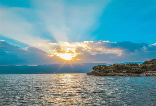 早晨絢麗的顏色與安靜的環(huán)境,帶來了難得的靜謐,草坪、公路、古樹、洱海,一切看到的都讓你很快沉醉在這里。