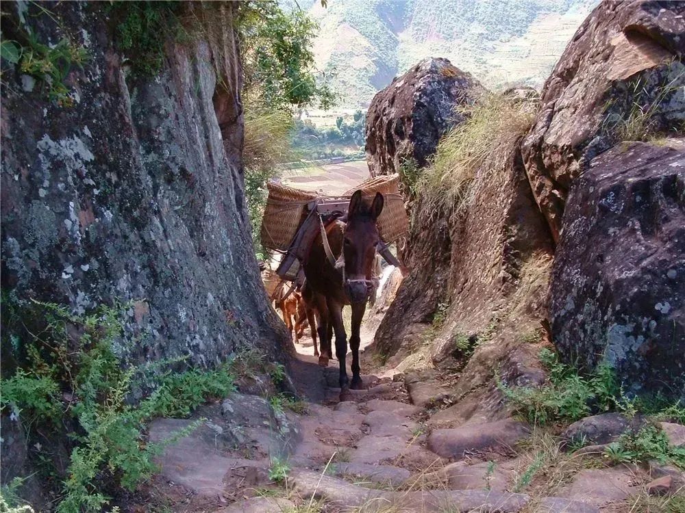 北方的四條石板路蜿蜒向遠(yuǎn)方的群山,這是古代的鹽馬古道。那些曾經(jīng)絡(luò)繹不絕的馬幫,穿越山川,留下了這片土地上的歷史痕跡。石板路上馬蹄的痕跡清晰可見(jiàn),仿佛是千年前馬蹄的回響。馬幫帶來(lái)的物資與這片土地的鹽餅子交換,鹽井、鹽道與馬幫交織在一起,構(gòu)成了一條經(jīng)濟(jì)的血脈。