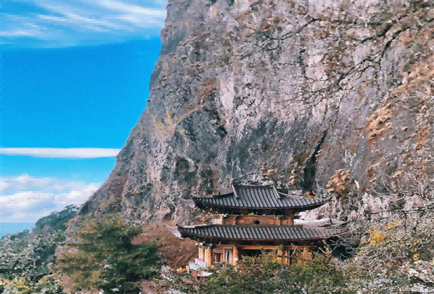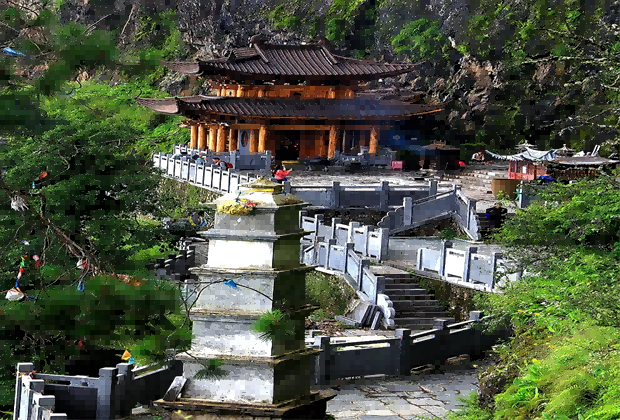 推薦路線:洗心橋—靈山一會(huì)坊—祝圣寺—虛云寺(觀光車上車去索道口)—金頂寺—華首門—迦葉殿華首門和迦葉殿在索道下行三分之一處,建議走下山腳,或折回來(lái)到索道口。