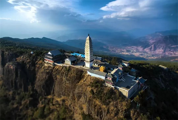 金頂寺坐落在海拔3248米的天柱峰頂。金頂寺始建于明朝,民國(guó)時(shí)期,龍?jiān)茡苜Y建楞嚴(yán)塔。1980年,人民政府撥款重修金頂寺,現(xiàn)在的主要建筑有:三官殿、睹光臺(tái)、天王殿、鐘樓、鼓樓、金殿、楞嚴(yán)塔、飲光殿、大雄寶殿等,是信徒游客到雞足山禮佛觀光必去之所。
