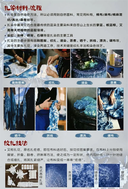 扎染的制作過程復(fù)雜而精細(xì),主要分為以下幾個步驟:
