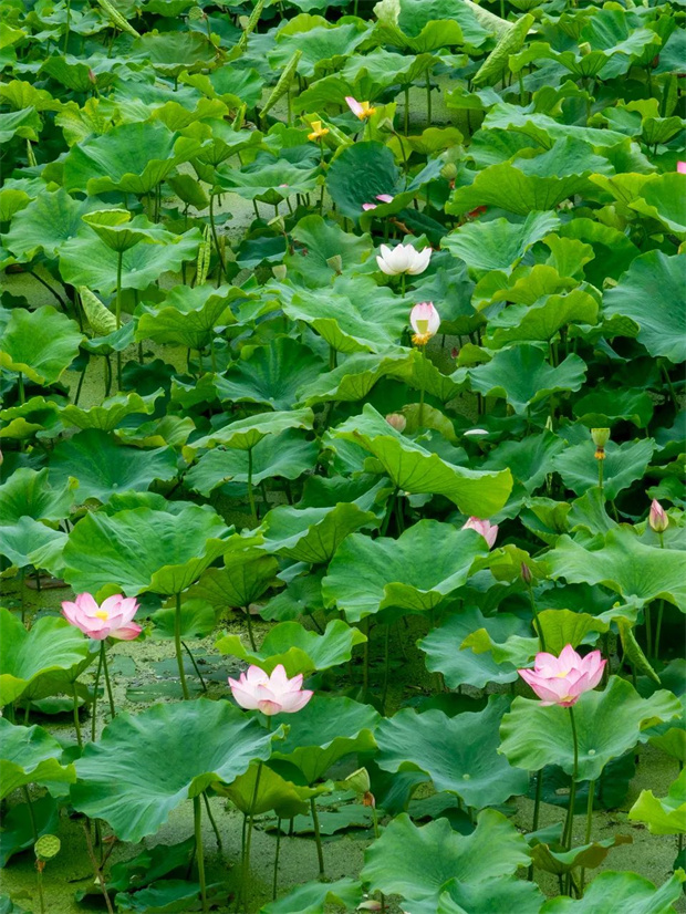 層層疊疊的荷葉撐滿湖面