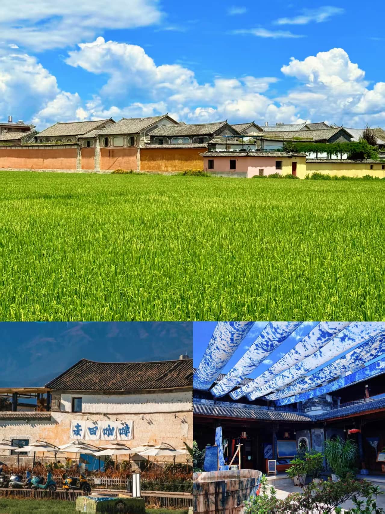 從大理古城向北22公里,喜洲古鎮(zhèn)以嚴(yán)家大院為代表的明清商幫建筑群,見證著茶馬古道的繁榮。這里的白族民居以“三坊一照壁”“四合五天井”為特色,雕梁畫棟間藏著白族匠人的智慧。而真正讓喜洲聲名遠(yuǎn)播的,是國(guó)家級(jí)非遺——扎染。在璞真扎染博物館,游客可親手體驗(yàn)用板藍(lán)根染布的古法技藝,將蒼山云霧、洱海波紋凝固成藍(lán)白相間的方巾。古鎮(zhèn)外的稻田里,小火車穿梭于金黃麥浪間,成為網(wǎng)紅打卡的“移動(dòng)風(fēng)景線”。