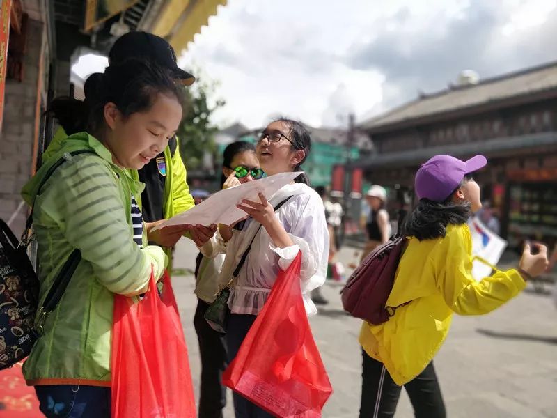 行程第二天:同學(xué)們來(lái)到了大理古城,進(jìn)行古城巡禮活動(dòng)。一張大理手繪地圖指引著同學(xué)們前行,對(duì)地圖上的任務(wù)點(diǎn)“文廟”、“武廟”做了深度探索。在任務(wù)卡的指引下,同學(xué)們對(duì)大理古城的本地居民、商戶(hù)、游客做了采訪,讓他們寫(xiě)下祝福的話(huà)語(yǔ),并錄制了采訪視頻。吃過(guò)晚飯后,在美麗的夕陽(yáng)下,同學(xué)在導(dǎo)師的組織下,對(duì)今天下午的活動(dòng)進(jìn)行研學(xué)總結(jié)與分享。大家都興致勃勃的講述著大理·麗江研學(xué)之旅當(dāng)天的所見(jiàn)所聞,以及自己的感悟想法。