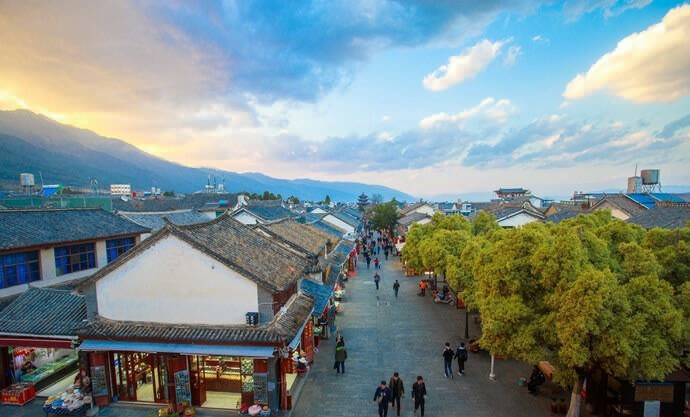 大理古城位于云南省西部,又名葉榆城、紫城。古城其歷史可追溯至唐天寶年間,南詔王閣邏鳳筑的羊苴咩城,為其新都。古城始建于明洪武十五年(1382年),占地面積3平方公里。