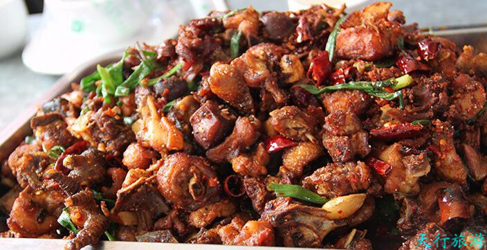 19、到永平吃最美味的雞,黃燜雞、木瓜雞、辣子雞、叫花雞…色香味美、唇齒留香,加上油炸豌豆粉、熱油豆豉配飯,吃到扶墻而出。