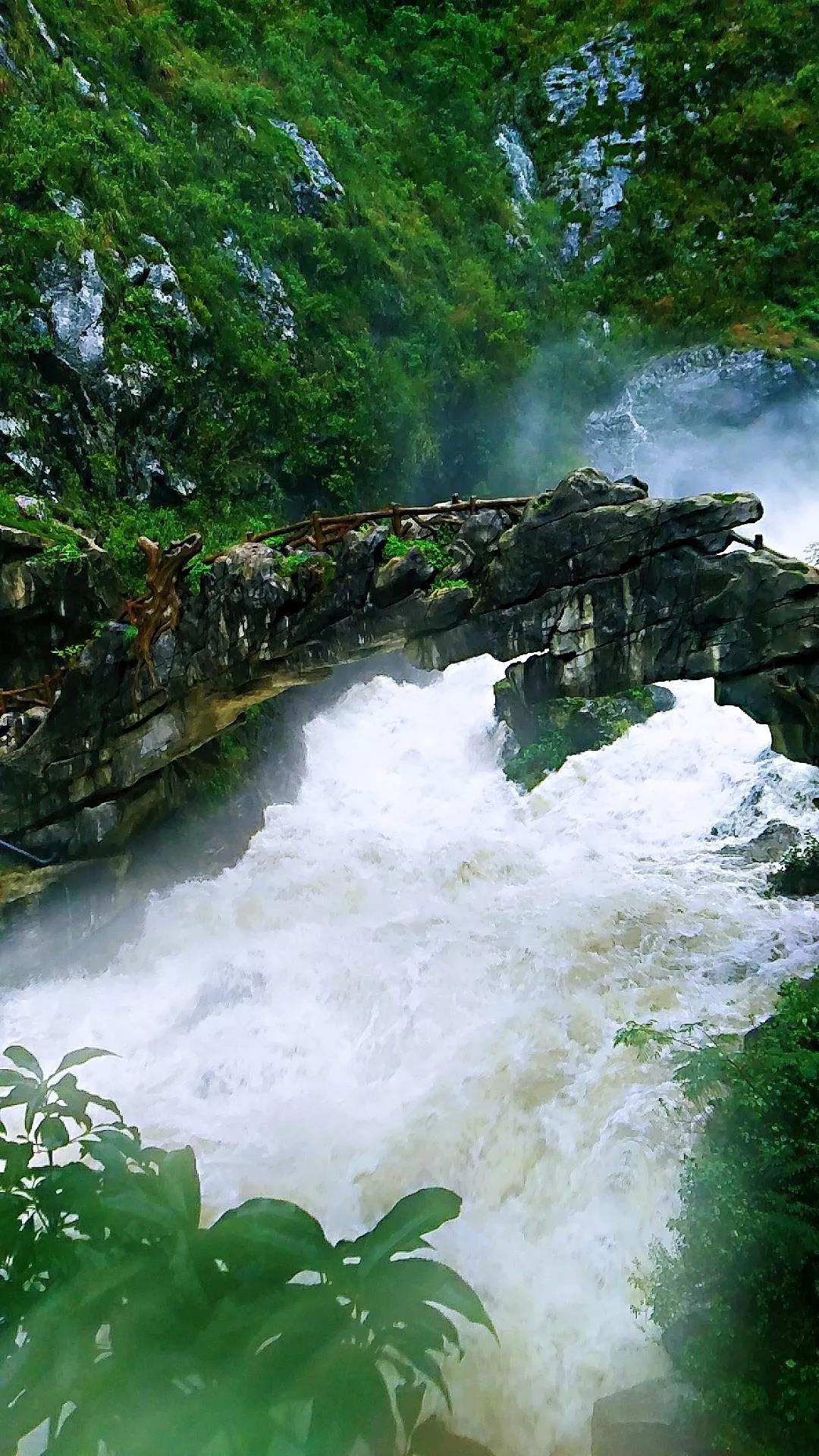 漾濞石門關(guān)位于蒼山龍泉峰與玉局峰西麓,兩座高數(shù)百米的斷崖峽谷,形如兩扇巨大的石門,清流飛瀑,奔瀉而出,是一處神奇的景觀。周圍巉巖壁立,峽谷深邃,谷地溪流湍急。石門關(guān)實(shí)為鬼劈神鑿,異境開天,具有“一夫當(dāng)關(guān),萬(wàn)夫莫開”之勢(shì)。