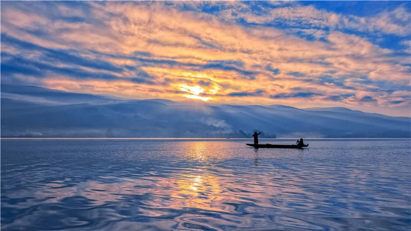 “棉被云”“蘑菇云”、玉帶云,演繹不盡大理云之魅。晚霞點染水天一色,變幻無窮的光影大片,任誰也不舍挪眼。