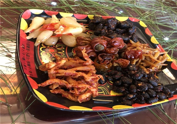 宴席菜即“團(tuán)結(jié)和睦”開胃小碟,是南詔王為紀(jì)念“六詔民族團(tuán)結(jié)和睦一家親”而創(chuàng)造的。