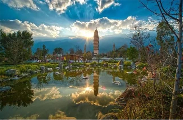 崇圣寺三塔天地之間美麗的倒影好像處身在仙境之中