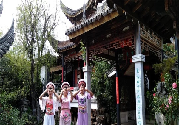 走進(jìn)張家花園,第一感覺是清麗雅致,院子錯落有序,花開層層疊疊,在有限的空間里濃縮呈現(xiàn)和歷史、時代融合的白族建筑樣式,撲面而來的是白族人閑逸的生活氣息。賞花,品白族三道茶,看粉紅的、水紅的、潔白的、帶紫的、大的、小的茶花開滿角角落落,與飛檐和歌,共藍(lán)天絮語,一整個春天就在耳邊、眼里、心頭。