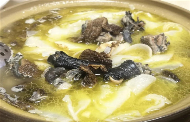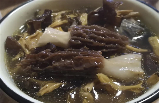 吃夠了草帽餅和雞豌豆涼粉,第二重奏的湯就煮好了。此時連湯帶菌地大碗舀,吃菌前,無妨先來一口湯。這一口湯,在雞湯里加了十幾重菌香,滋味也較多元,足以讓每一個味蕾都歡欣舞蹈。