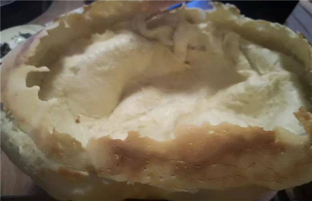 這草帽餅,其實就是一種水汽粑粑,不一樣的是,土土人家突發(fā)其想,創(chuàng)造性地用高壓鍋烘烤,讓發(fā)酵好的面遇巨熱迅速膨脹,開出一大朵草帽一樣的“粑粑花”來。入口泡松的同時,極有嚼勁,濃濃的麥香瞬間讓人有種置身五月金燦燦成熟麥田里的錯覺。