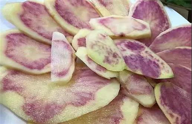 菌子吃完,加湯,第三重奏開啟。加花心洋芋、蔓菁片、干板菜、山藥等。花心洋芋是劍川、鶴慶兩縣交界處的山里獨有的特產(chǎn),是劍川的東山,也是鶴慶的西山,此處產(chǎn)的洋芋,外形像耗子,所以又叫“老鼠洋芋”,切開來,每片洋芋都帶著一朵紫紅色的花,煮著吃極香極糯,非常受歡迎;蔓菁有點兒像蘿卜,但長成扁圓形,外觀紫紅色,也有里面也是紫紅的,這種更好吃;干板菜就是把冬天長得非常好的青菜,滾水過一下,撈出來曬干,之后泡水稍加發(fā)制,即可煮吃。蔓菁和干板菜都非常吸油,煮一會兒,湯湯菜菜舀出來,此時的湯,最大的特色就是料想不到的清淡!因為油鹽都吸到菜里去了。這湯清淡的同時,又回味著雞、菌和菜的香,喝起來有種淺嘗輒止的雋永意味。