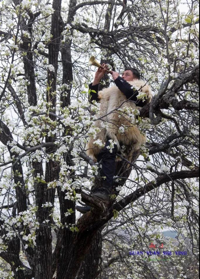 穿著羊皮褂子吹嗩吶,也成了松鶴嗩吶藝人的標準形象。