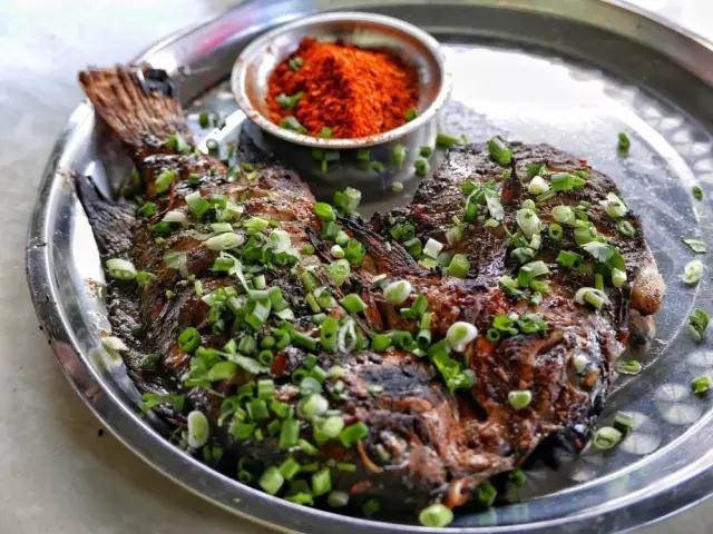 烤好的魚上面撒上蔥花,再配一碟辣椒粉,坐在海邊別有一番風(fēng)味。