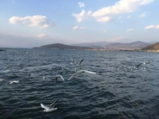 沒錯(cuò),它們就是紅嘴鷗,從西伯利亞遠(yuǎn)道而來,當(dāng)遇上洱海后,這個(gè)冬天就再也不愿意離開,因?yàn)檫@里,能夠讓它們以一種舒適的方式過冬。