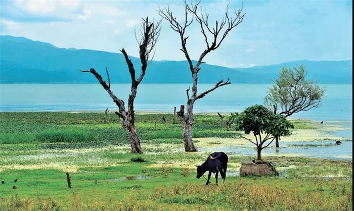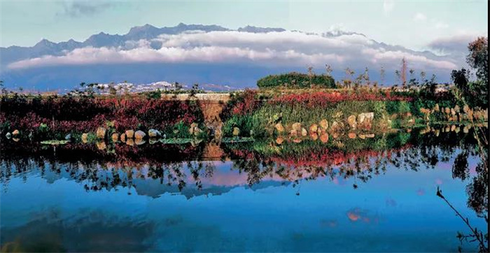 “天空收割了美麗,青山盈滿了紅綠,湖水汲取了流云。藍(lán)天里,鳥兒在高高飛翔;人們種下了綠色的舞蹈,收獲金色的詩歌……”我想,用這首詩來描寫大理的秋色,再恰當(dāng)不過了。這是一片絕美不言的土地,湛藍(lán)的天空通透如洗,朵朵白云悠然飄逸,清澈的流水綿滑如脂,晚霞暈染美麗的村莊,星星閃爍在寂靜的山谷……美麗的大理,與她相約不止一次,她仿佛一汪清澈的甘泉,豐潤(rùn)純凈,滋養(yǎng)我心田。