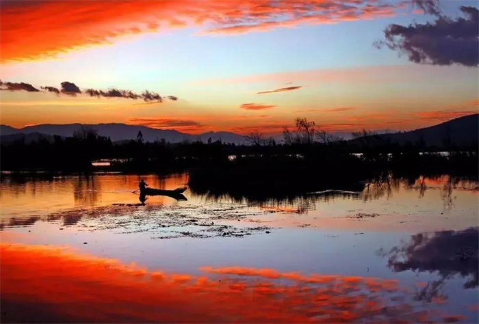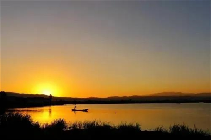置身洱源西湖,仿佛置身一個(gè)神秘的天國(guó)。除了風(fēng)聲、歌聲、鳥聲,整個(gè)西湖闃寂無(wú)聲。秋日的余暉輕輕拍打著它,它仰天向上,把神秘的幸福密碼深壓在身下。“湖光蕩漾幾回紋,漁父歌聲鬧水濱,信口舢敲湘漢句,斷腸弄笛雁鴻云。三三對(duì)白煙蓑合,兩兩歸帆獲岸分。最趁夕陽(yáng)含缺處,前村沽酒帶余醺?!痹谶@樣一幅背景中,偶爾還能看到牧童嬉鬧,大娘浣衣,村姑笑吟。