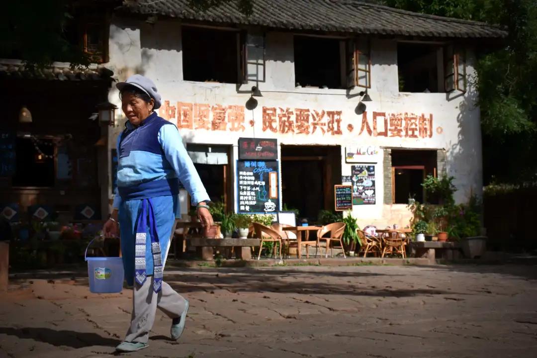 喜洲的街巷大多窄而長,巷道兩旁的長墻,有的陳舊斑駁,有的掛著斑斕的扎染布,稀疏的人影,偶爾傳來的腳步聲,仿佛靜下來就能聽見這座千年古鎮(zhèn)的心跳聲。