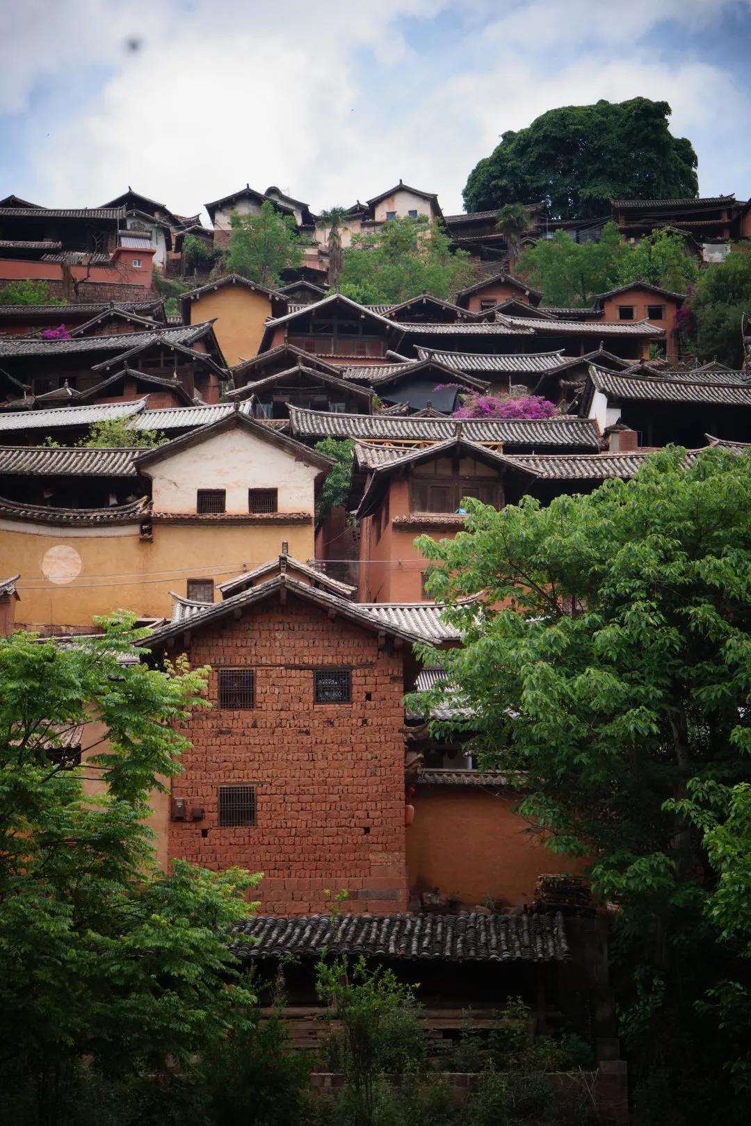 諾鄧有著滇西最集中的明清古建筑群和明清文化遺存,一百多座古代民居院落,依山而建,從山頂?shù)缴侥_,層層疊疊的房子就像掛在半空中一樣。走在村里磨得锃亮的石板路上,環(huán)顧古老的建筑,你會(huì)忍不住感嘆歷史似乎在這里停滯。順著陡峭的青石板臺(tái)階踏入這座古村,平靜祥和的氣息鋪面而來。隨意走進(jìn)一戶民居,一個(gè)個(gè)金燦燦的火腿懸掛在屋梁上,引得人垂涎欲滴。