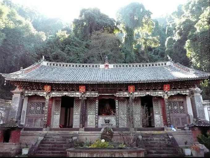唐代中期,南詔國極力倡導(dǎo)佛教,雖然巍寶山仍是大理地區(qū)的主要道場,但佛教成分也滲透到巍寶山,有觀音殿、甘露亭等佛教寺院,形成了佛道兩種教派相互吸收、相互融合的特點。道觀分布于前山和后山,前山綿亙疊嶂,宮觀多藏于密林之中,以建筑規(guī)模宏大而著稱;后山險峻陡峭,廟宇多依山勢顯露于巖壁之間。這種有藏有露的建筑布局,體現(xiàn)了道家思想"道德自然"的特點。這些尚保存完好的古建筑群,成為研究南方道教思想和建筑藝術(shù)的重要實物。其中,長春洞古建筑群屬全國重點文物保護單位。二是道教在巍寶山還兼收了土著民族的原始宗教的成分。巡山殿便是這一特征的代表。