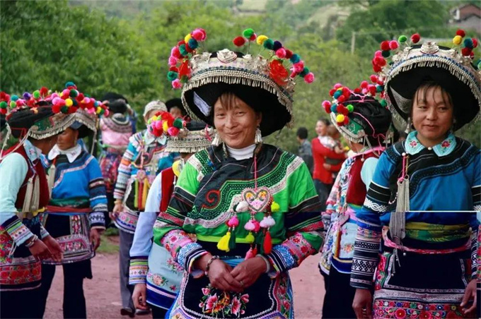 基本款式以黑、紅、藍、綠為主色調,刺繡工藝精湛,圖案變化多樣,飾物靚麗華貴。在東山、大倉一帶的彝族女子服飾中,可見留存的南詔王族遺風。