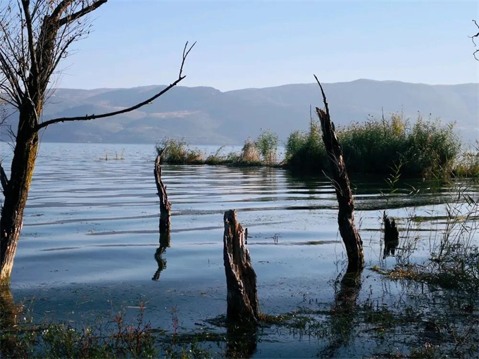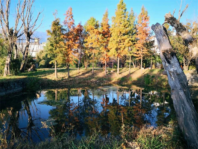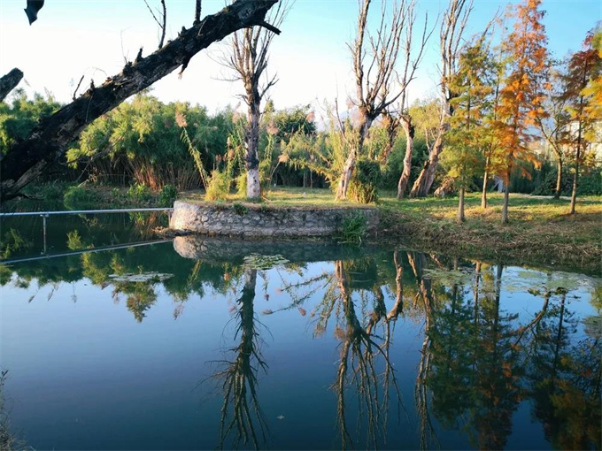 這是才村最像景點的景點,其實它是洱海邊的一片濕地,芳草、樹木和水域構(gòu)成了這里的浪漫景色。
