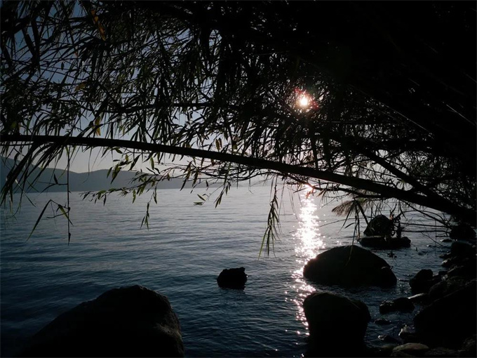 她們背后是蒼茫的洱海和大山,游船慢慢漂過,北面是游艇成排的才村碼頭,南面是探入洱海的老房子,只要靜靜地坐在石頭上就是一幅美景。